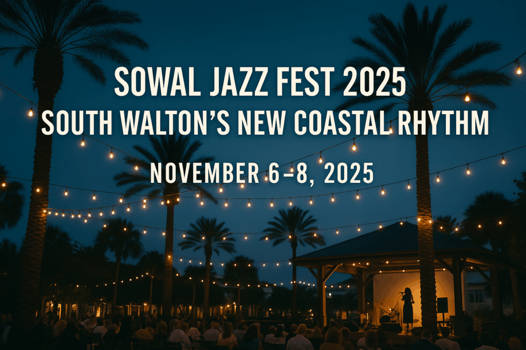 By November, South Walton’s summer buzz has settled into something slower and sweeter. The air softens, the crowds thin, and the Gulf hums quietly in the background. This year, that hum will find harmony with saxophones, trumpets, and voices that echo through the palms — because from November 6–8, 2025, the coast comes alive with the inaugural SOWAL Jazz Fest.